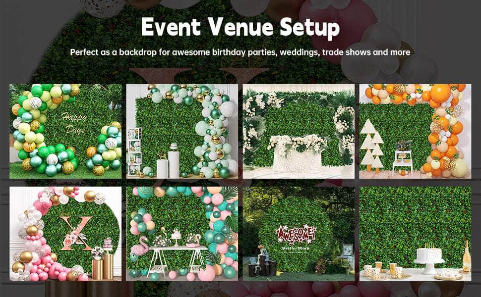 🍀SGS APPROVED: Crafted from PE materials, our greenery backdrop boasts aesthetic appeal and prioritizes sustainability. Its outstanding UV resistance guarantees long-lasting, vibrant colors. You can say goodbye to fading leaves and hello to a vibrant evergreen color that lasts.