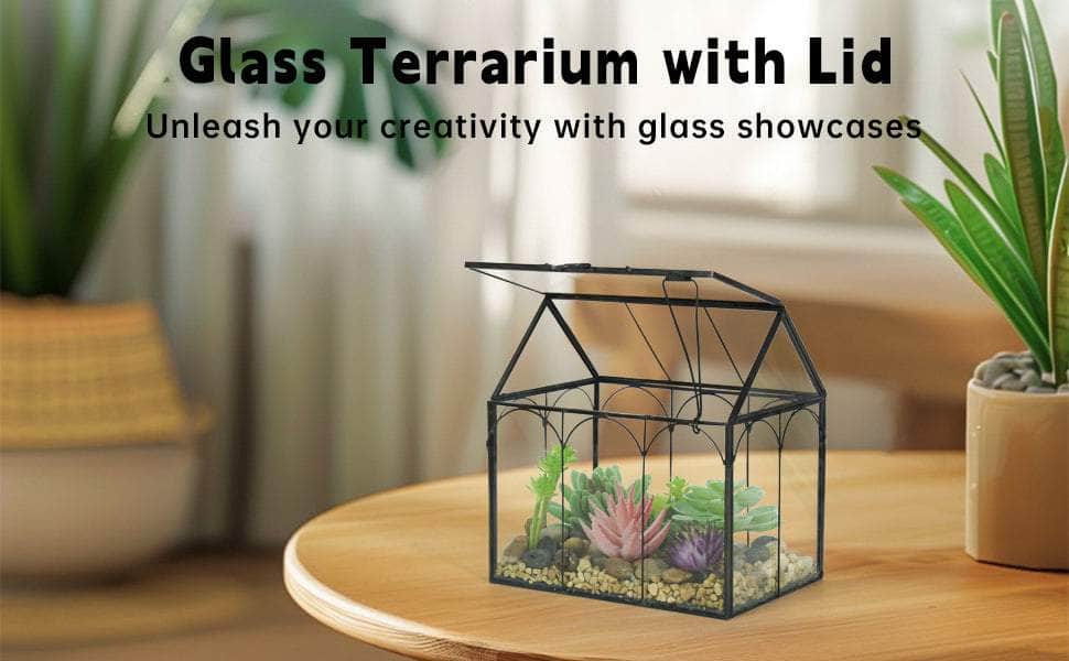 CLOSED & OPEN: All gardeners know - right plant, right place. Equipped with a hinged lid, the terrarium easily creates habitats for various plants. When closed, it helps retain humidity for humidity-loving ferns and mosses. When opened with the little prop rod, it helps to ensure ventilation for dry-loving cacti and succulents.