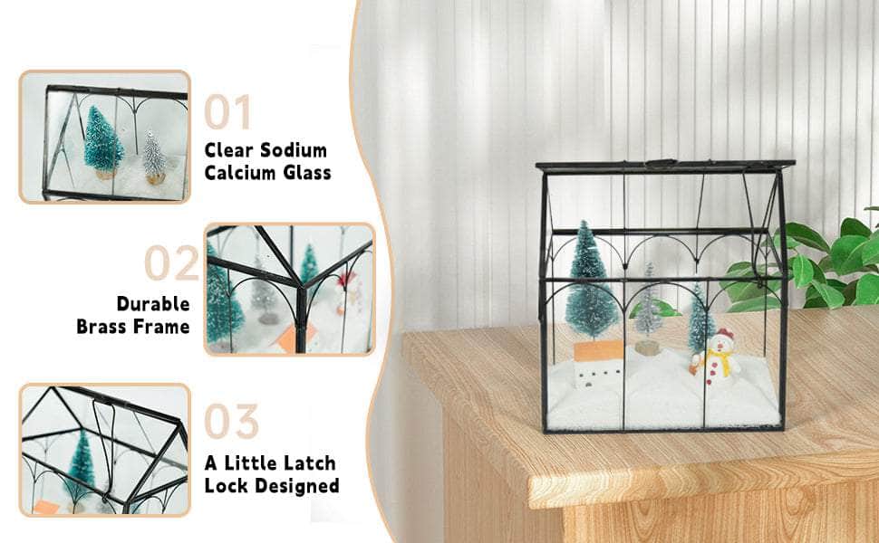 HIGH TRANSPARENCY: Our glass terrarium is crafted from clear sodium calcium glass, ensuring superior light transmission. This plant terrarium provides crystal-clear visibility of your beloved plants and ensures that every ray of sunlight penetrates the glass, promoting photosynthesis.